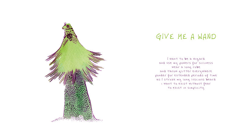 This is an illustrated poetry book with watercolor creatures and short feelings from the latter half of when I was 22. I created these illustrations by starting with an interesting blob and turning them into whatever it felt like they wanted to be. I wrote poetry afterward, and some of it is more personal than others. I created a font from my handwriting and a pattern for the inside pages from the illustrations.